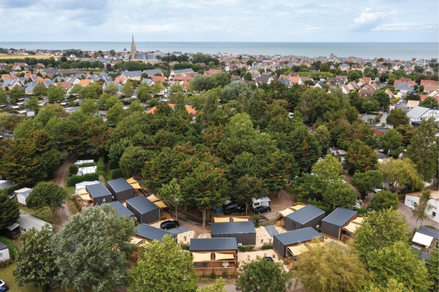 De camping ligt direct aan de historische kust van Calvados en beschikt over een uitstekende ligging aan zee in Saint-Aubin-sur-Mer, aan de Côte de Nacre in Normandië, met uitzicht op Het Kanaal en geopend gedurende het hele zomerseizoen.