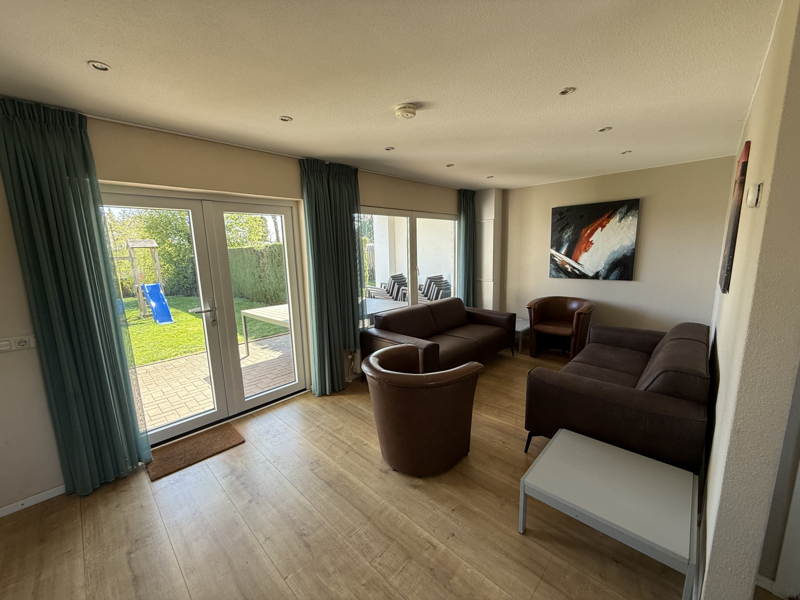 Welkom op Domein Hellebeuk! Op dit kleinschalige vakantiepark treft u sfeervolle vakantiehuizen geschikt voor 12-, 18- en 24 personen. De ligging in het Zuid-Limburgse heuvelland is uniek: tegen een zonnige helling van één van de heuvels die het Geuldal omringen, in alle rust en vrijheid. U kunt als gast gratis gebruikmaken van het zwembad en de all-weather tennisbaan welke op het park gelegen zijn. Tevens kunt u als gast van Domein Hellebeuk gratis gebruikmaken van de nieuw aangelegde jeu de boules-baan.Deze vakantiewoning is geschikt voor 24 personen. In de woning bevindt zich een hal met garderobe, woonkamer met televisie en een zit- en eethoek. De keuken is voorzien van onder andere een oven, magnetron, filter koffiezetapparaat en een vaatwasser. Op de eerste verdieping bevinden zich 10 slaapkamers. Acht slaapkamers zijn voorzien van een tweepersoonsbed en twee slaapkamers zijn voorzien van twee stapelbedden. Enkele slaapkamers beschikken over een vaste wastafel. In de woning vindt u vier badkamers met een douche en een toilet. Aan de achterzijde van het huis is een groot overdekt zonneterras (op het Zuiden gelegen) met tuinmeubilair. Hier bevindt zich de tuin met een oppervlakte van ca. 800m². Deze tuin is middels coniferen omheind, waardoor uw privacy gewaarborgd is. Aan de voorzijde van het huis heeft u de beschikking over zes parkeerplaatsen. *Deze accommodatie bestaat uit twee 12 persoons vakantiehuizen en hebben beiden een eigen ingang. Er is dus geen tussendeur. Het ene huis is ingericht om gezamenlijk te koken en te eten en is voorzien van twee lange tafels met 24 eetkamerstoelen. Het andere huis is ingericht om met het hele gezelschap bij elkaar te zitten en bestaat uit zes drie-zitsbanken en zes fauteuils. Tussen beide tuinen bevindt zich wel een tussendeur.