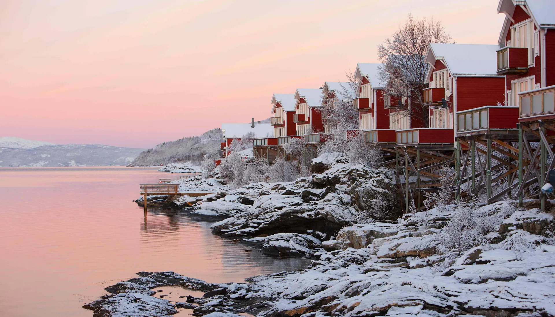 Op een mooie plek, weg van de drukte van Tromsø, ligt Malangen Resort pal aan het water van de Malangsfjord. In de winter wordt het het Northern Lights Resort genoemd, want zonder de lichtvervuiling van de stad heb je hier grote kans om het noorderlicht te zien. Kom helemaal tot rust, ook als je deelneemt aan de winterse excursies en activiteiten. Ga op pad met husky's, wandel met sneeuwschoenen in diepe lagen sneeuw, ontspan in de sauna of start de motoren van je sneeuwscooter. Je kunt je arrangement zelf samenstellen. De laatste overnachting is in Tromsø, de bruisende stad met nog een aantal iconische bezienswaardigheden.